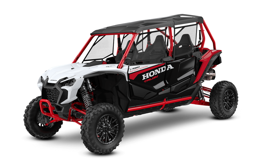 The Talon 1000X-4 is your ticket to shared adventure on tight trails and technical terrain. With room for four, it’s powered by our legendary 999cc Unicam® engine, smooth automatic Dual-Clutch Transmission, and available FOX Live Valve suspension for unmatched handling and control. Precision performance meets family-friendly fun — because adventure is better together.